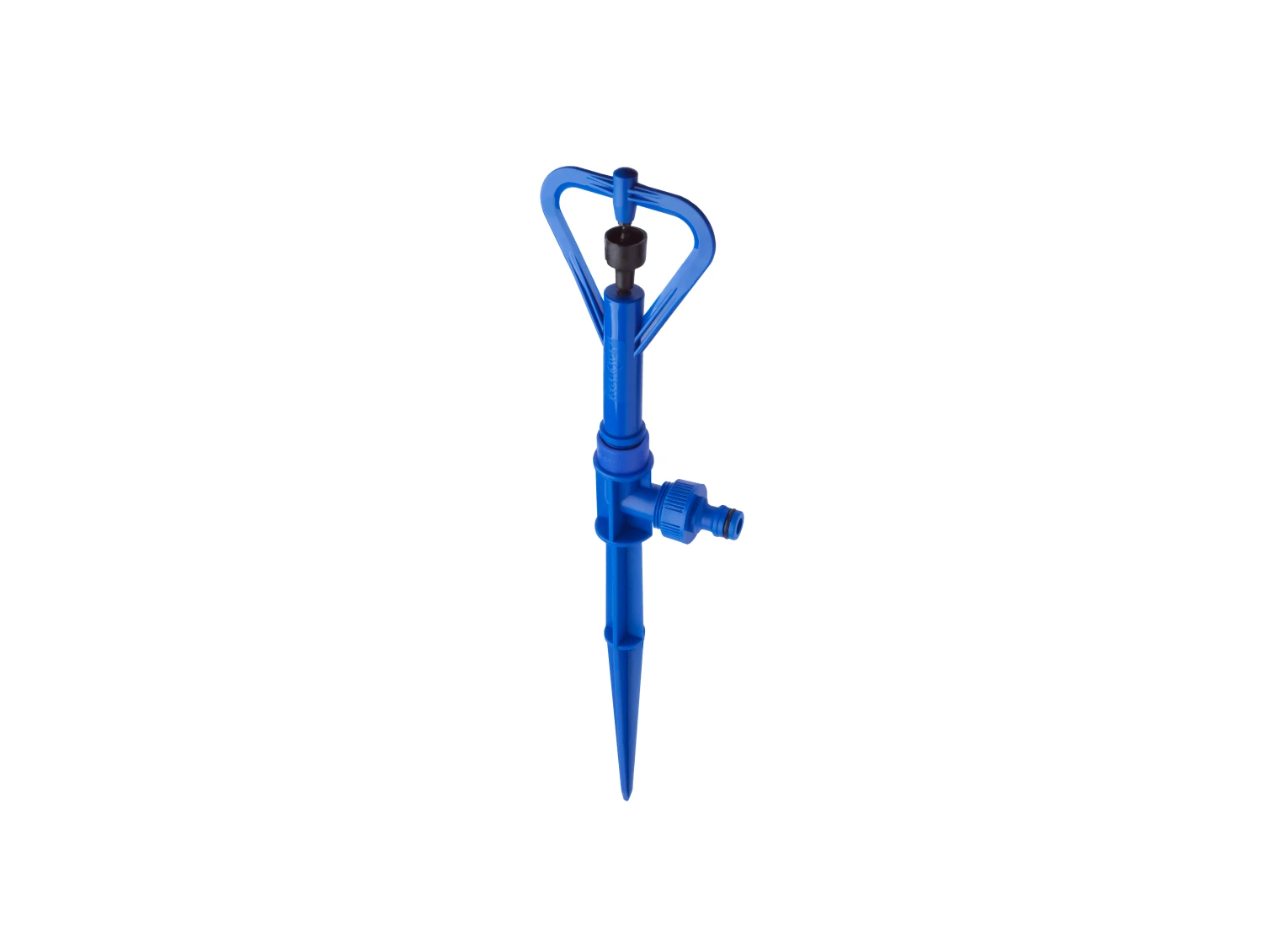 Aspersor com haste própria de sustentação. Indicado quando se necessita de baixa pressão, aliada a um ótimo molhamento.